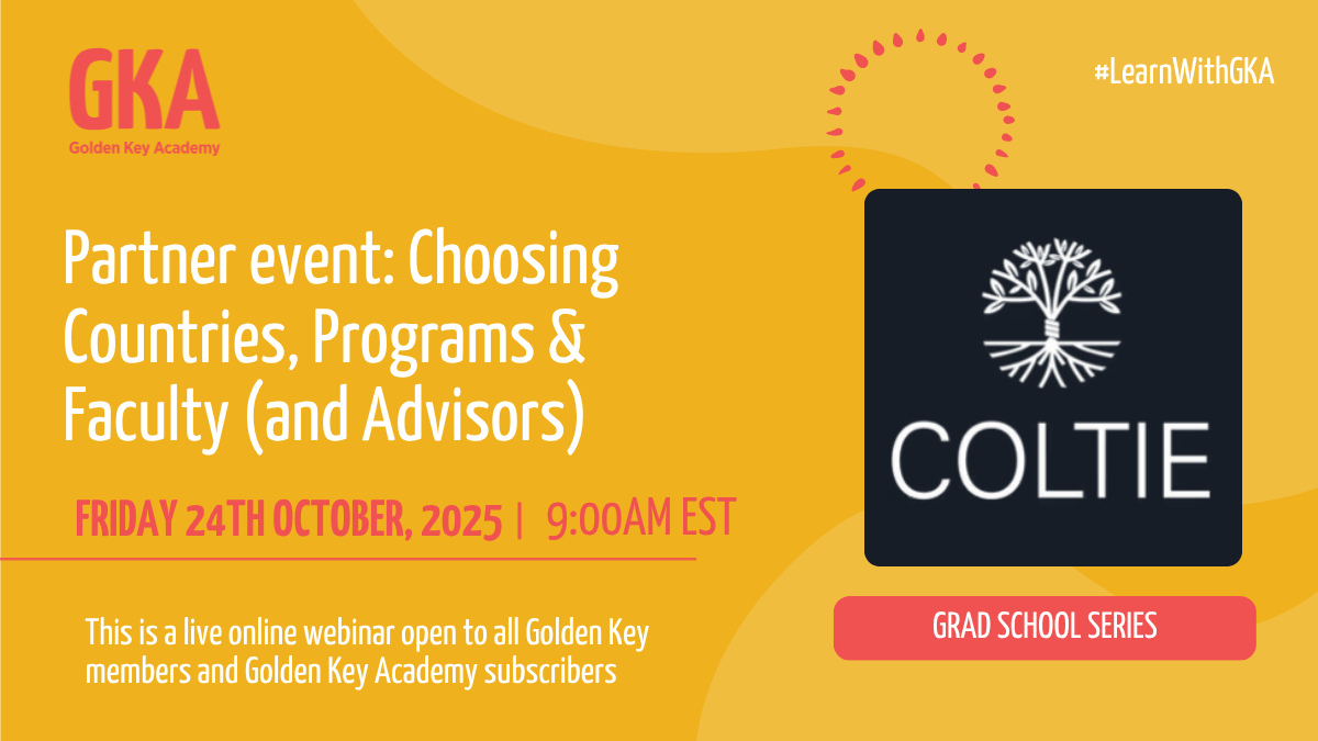 Golden Key Academy is a place of online learning created and run by Golden Key International Honour Society. It offers over 50+ hours of online training videos plus weekly live webinars, special events and access to a library of informative content covering career development, workplace readiness, communication, study skills, personal finance and leadership.